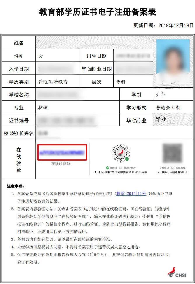 需要本人登录中国高等教育学生信息网(www.chsi.com.cn)点击“在线验证”,打印在线验证报告《教育部学历证书电子注册备案表》(详细流程请登录学院主页查看招生专栏的招生报名要求),如果未能申请在线验证(2002年以前毕业的),请提供《中国高等教育学历认证报告》,其样式分别如下: